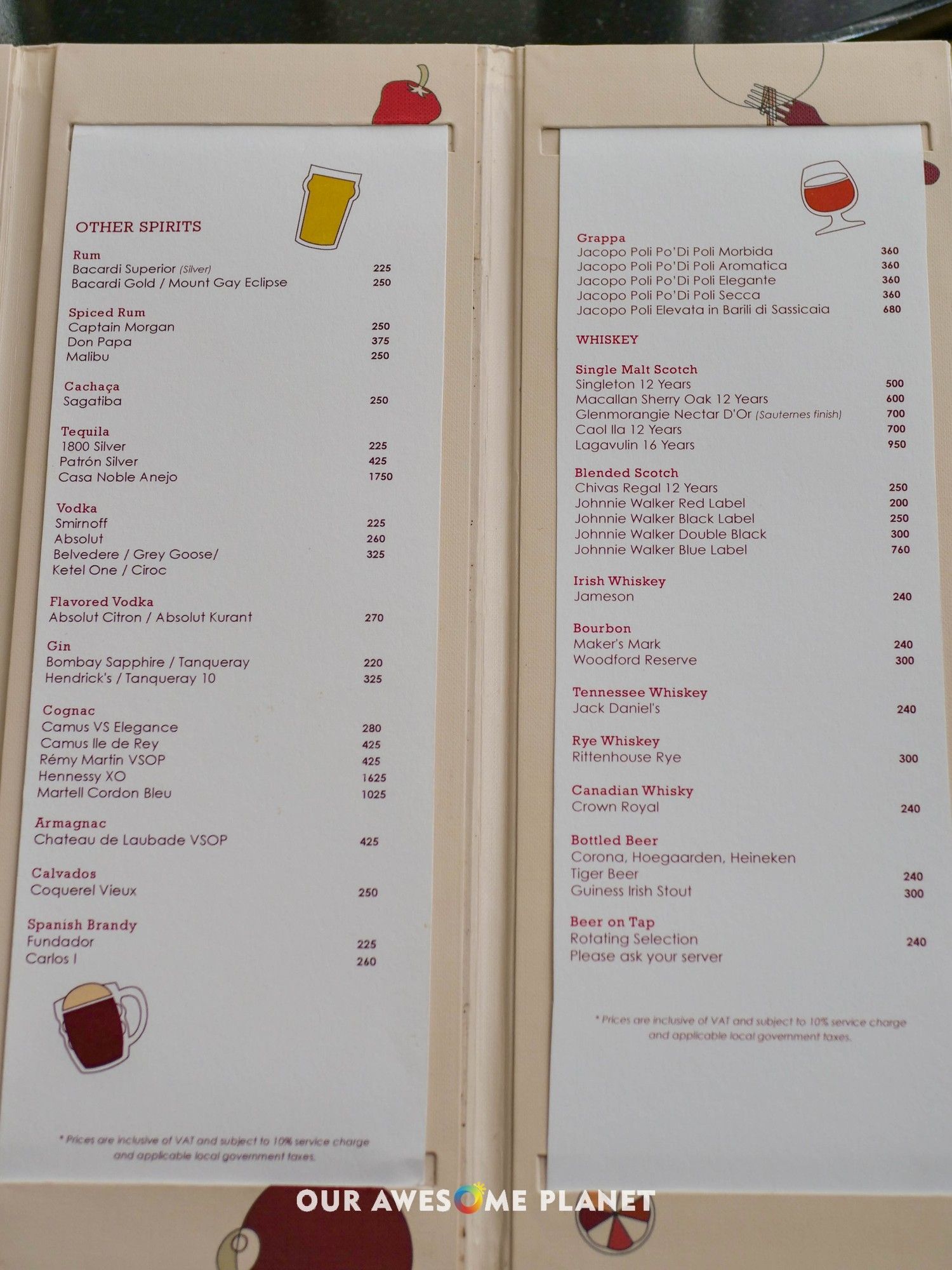 …with a wide selection of standard (₱450++) and premium gins (₱800++).
