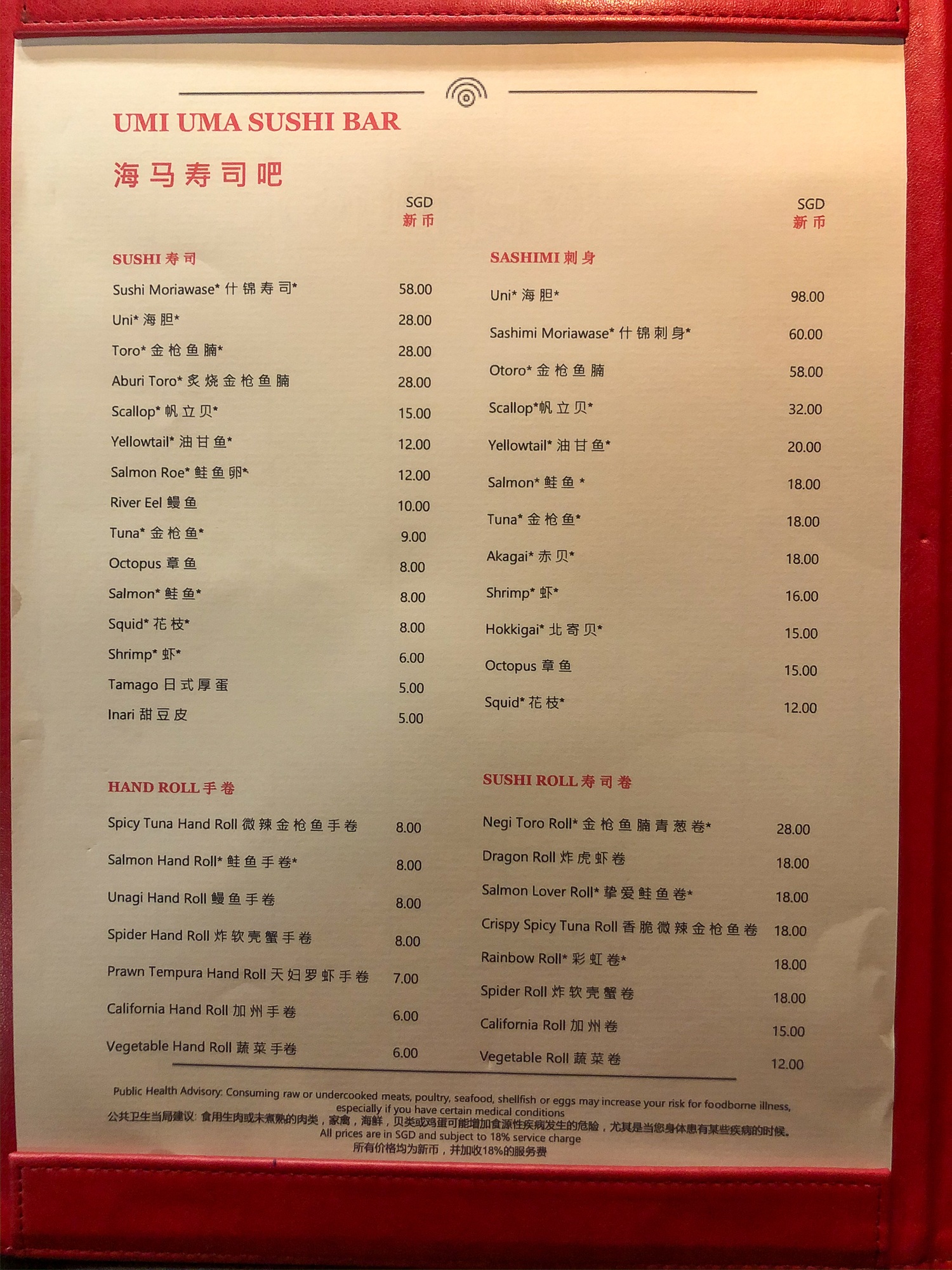 Umi Uma Menu: The Palace Suites Special Menu | Sushi Bar | Teppanyaki Supplementary
