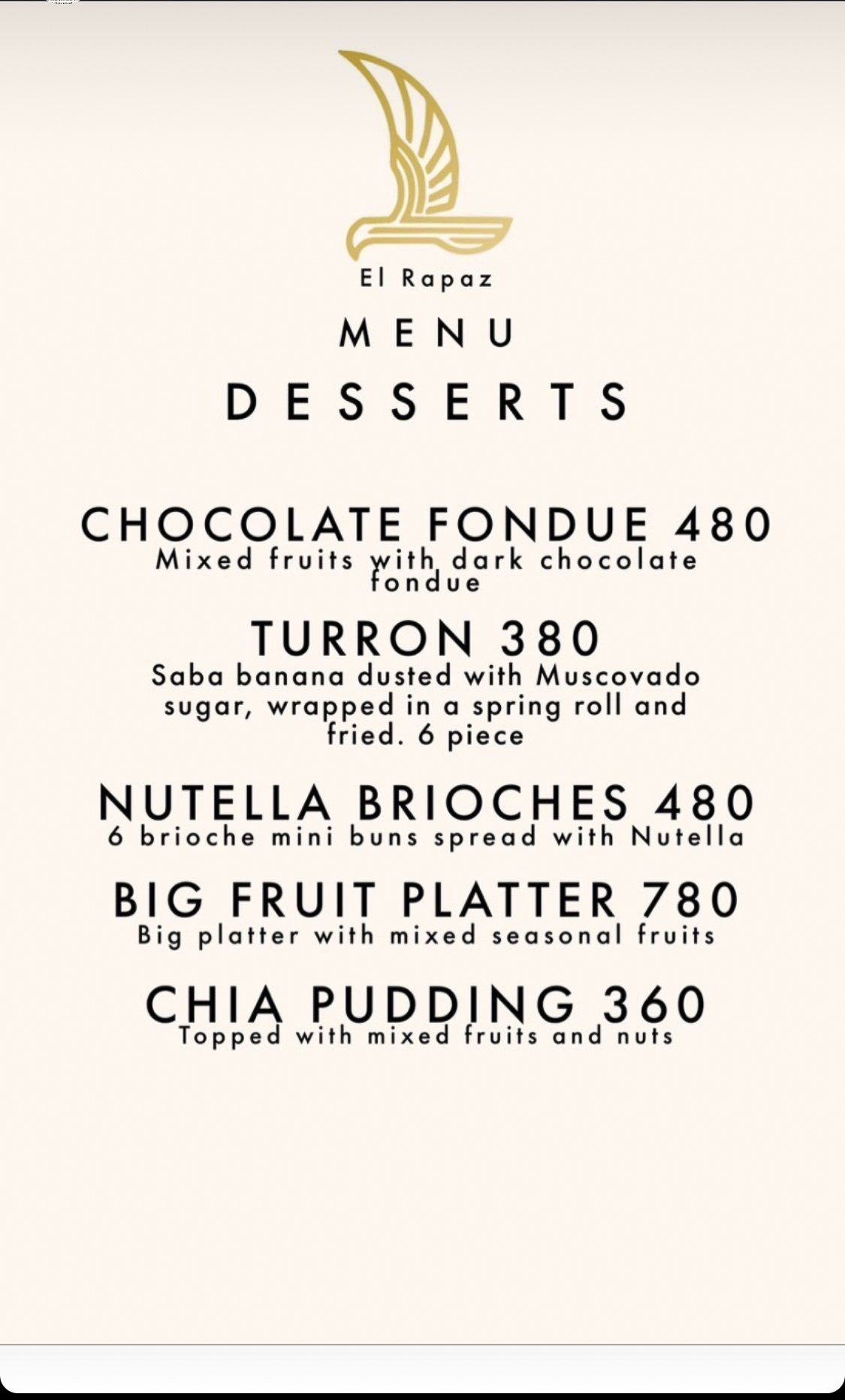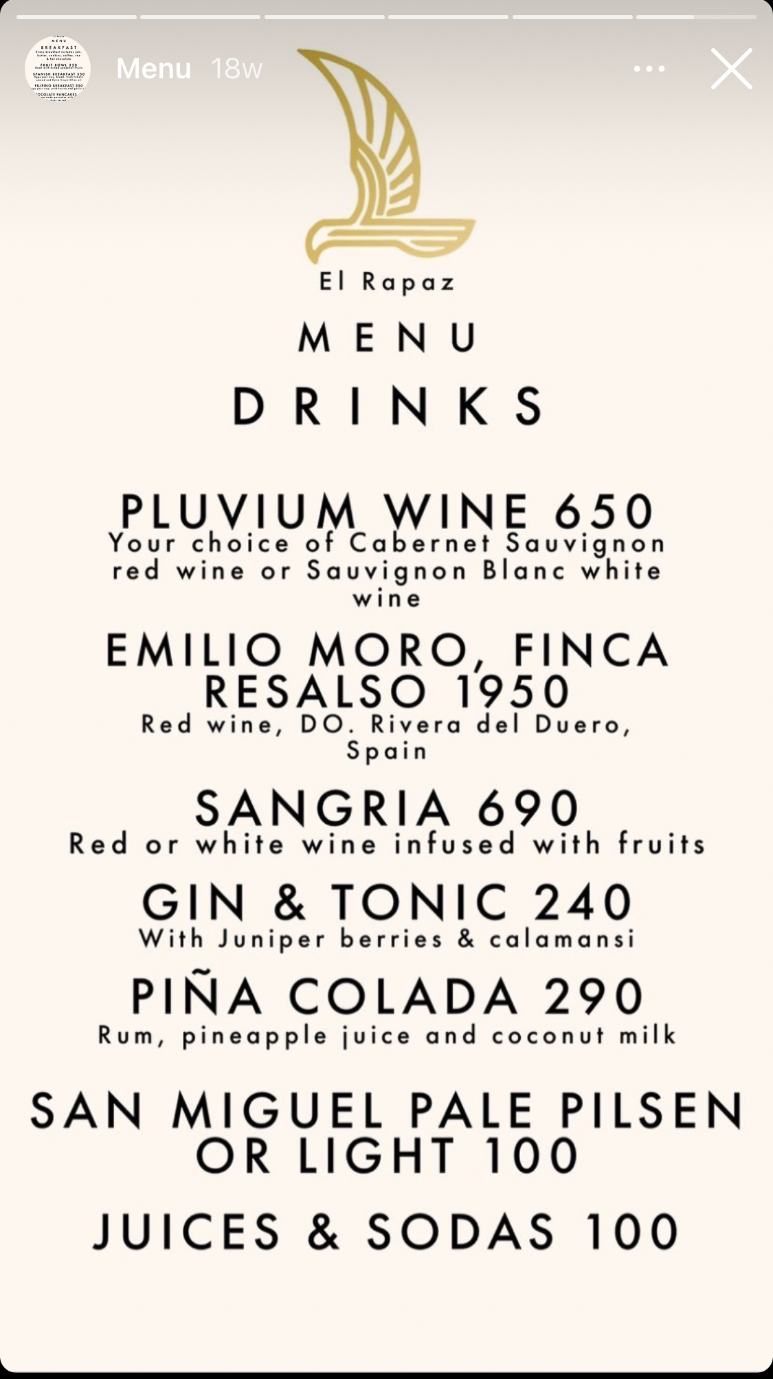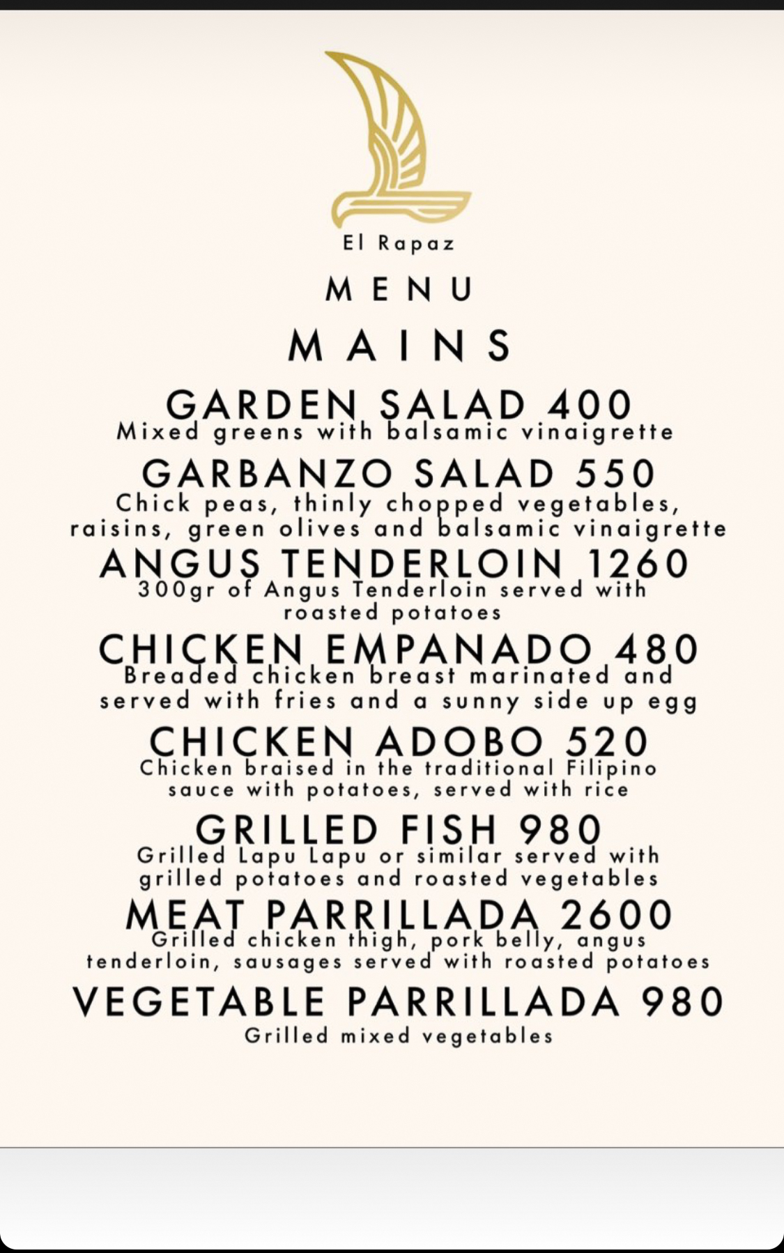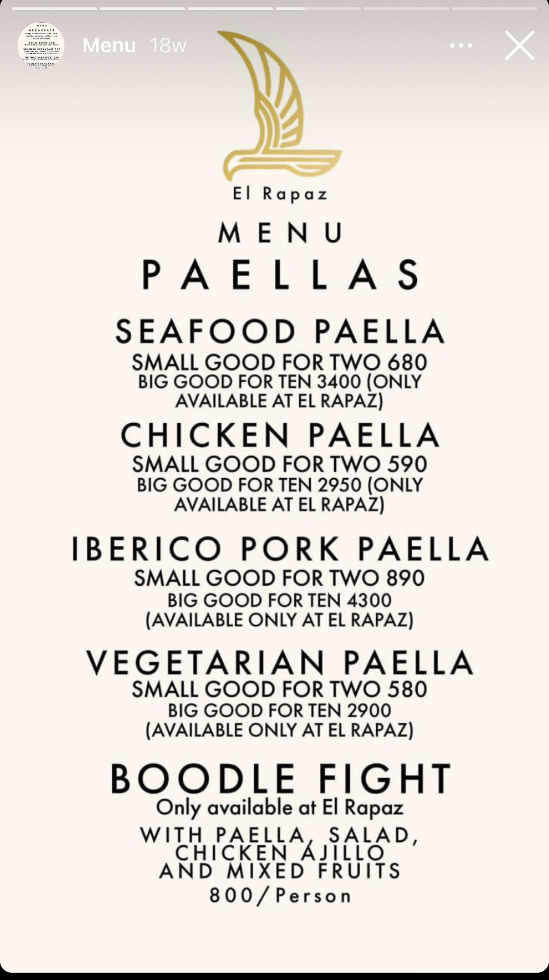 El Rapaz Menu: Pica Pica | Mains | Paella | Desserts | Drinks | Breakfast