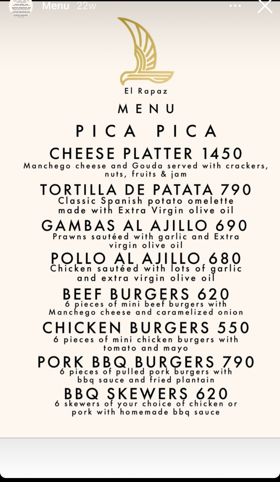 ✅ You can also pre-order from the El Rapaz Spanish menu with a fantastic chef onboard who will cook fresh for you!