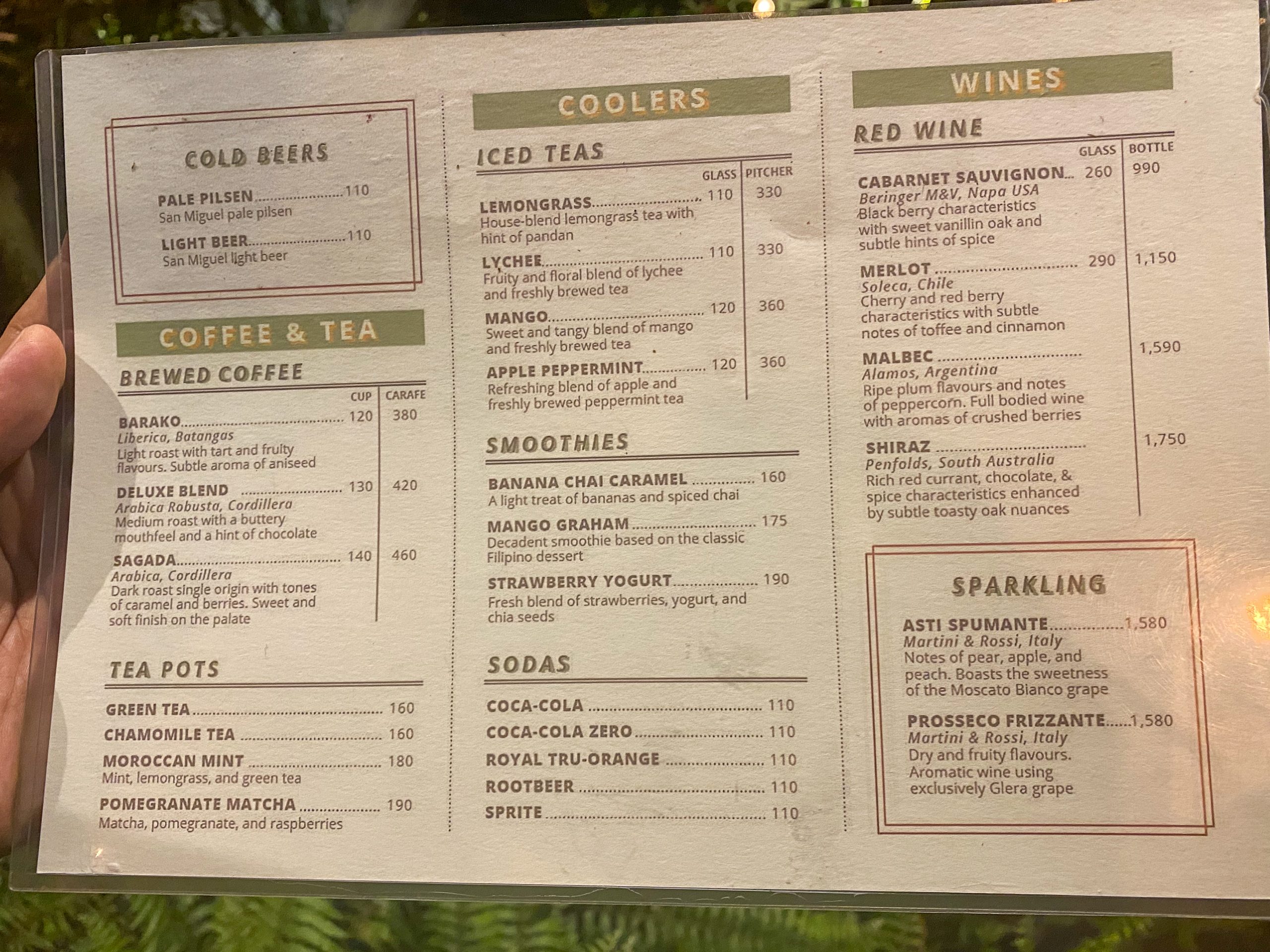 The well-crafted set menus are good value. On hindsight, we should have ordered the Hiraya with the beef shank as the main dish (instead of the chicken). Budget about ₱1,800/head including drinks.