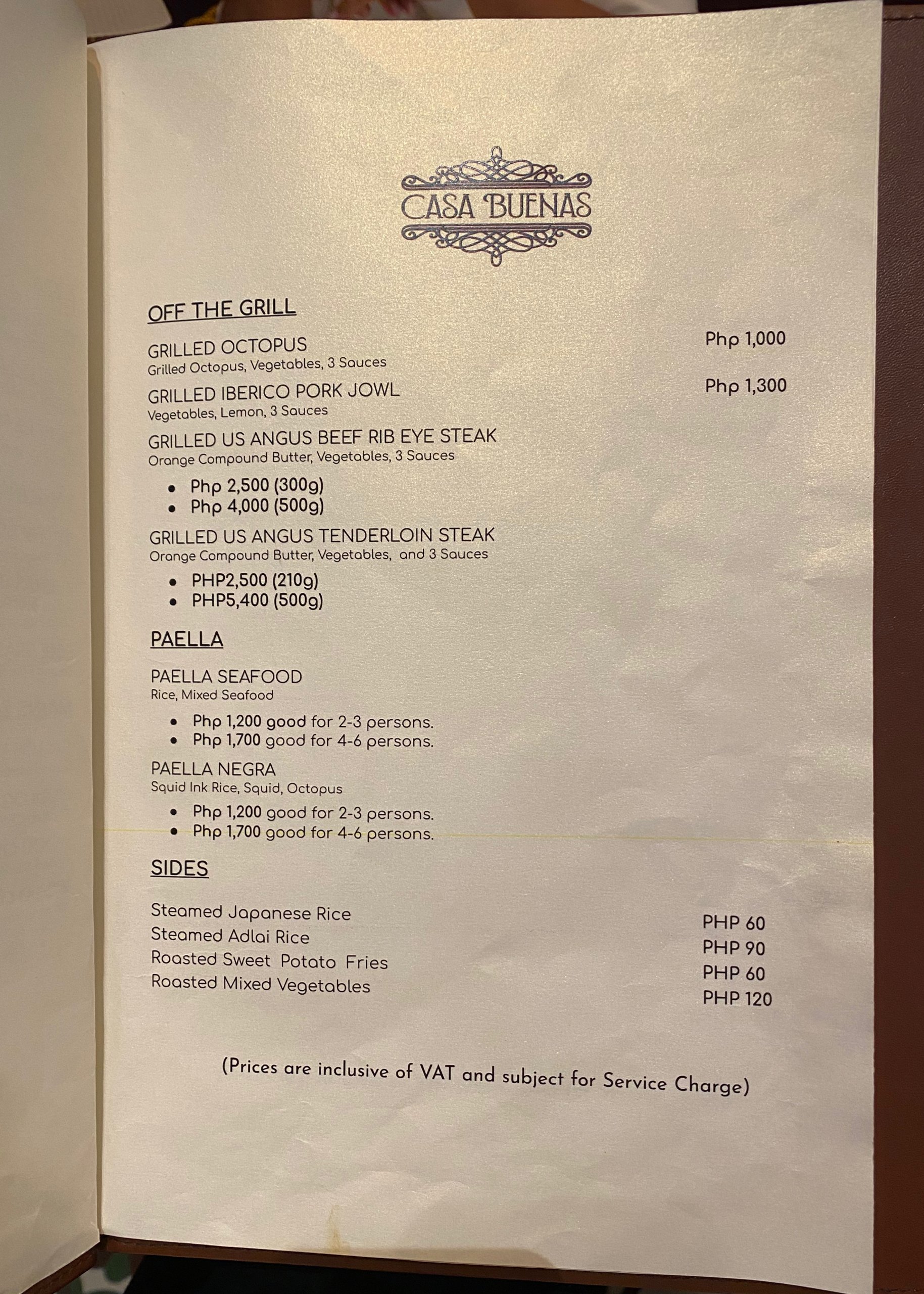 We loved the soups, the paella, grilled meats and their signature dessert. It would be good to dine in here with a group to enjoy eating their cochinillo de buenas at the gazebo. Budget about ₱2,200/head + drinks.