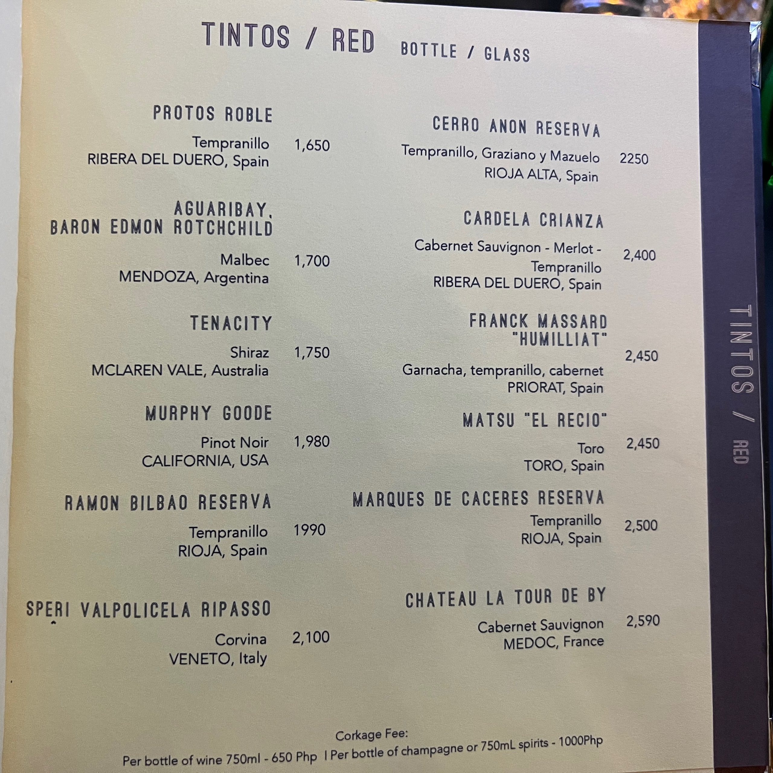 Budget ₱700/head if you are just going for drinks and tapas or ₱2,000/head if you are going for the steak or cachopo with wine.