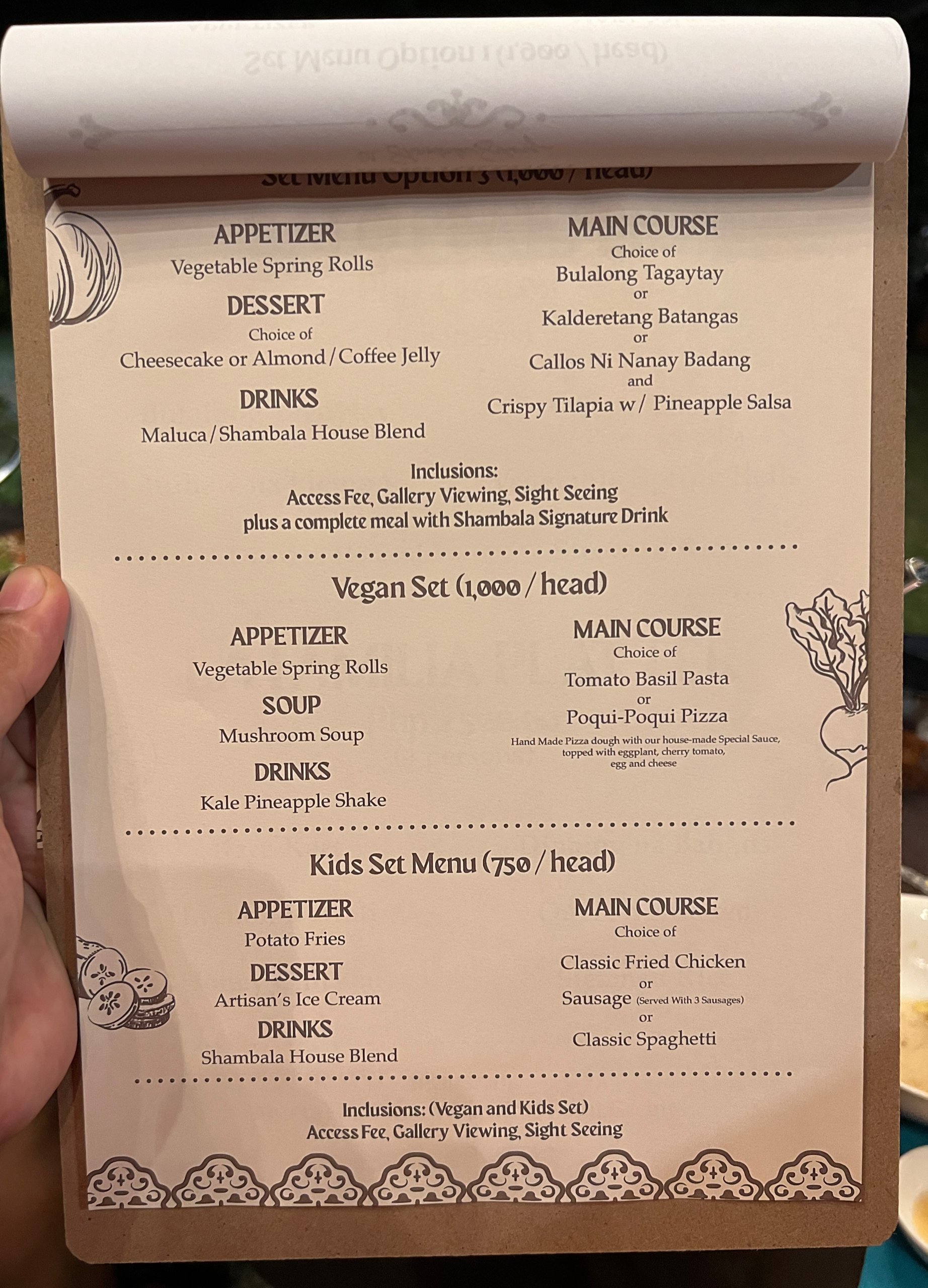 Inclusion: Access Fee, Gallery Viewing Fee, Tour Fee and Sight Seeing all over Shambala + Drink