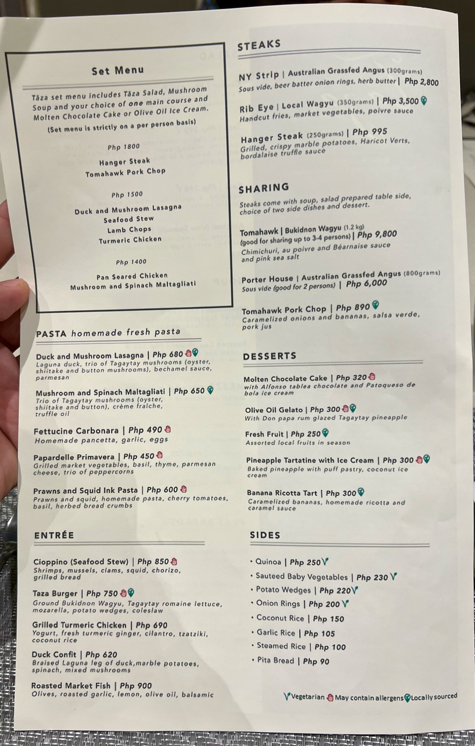 Taza is the place to celebrate your special occasions at Taal Vista or in Tagaytay in general because of its well executed steaks and pork chop. The steak is quite tasty, cooked medium with a good meat to fat ratio. Make sure to also try the pork chop served tomahawk style.