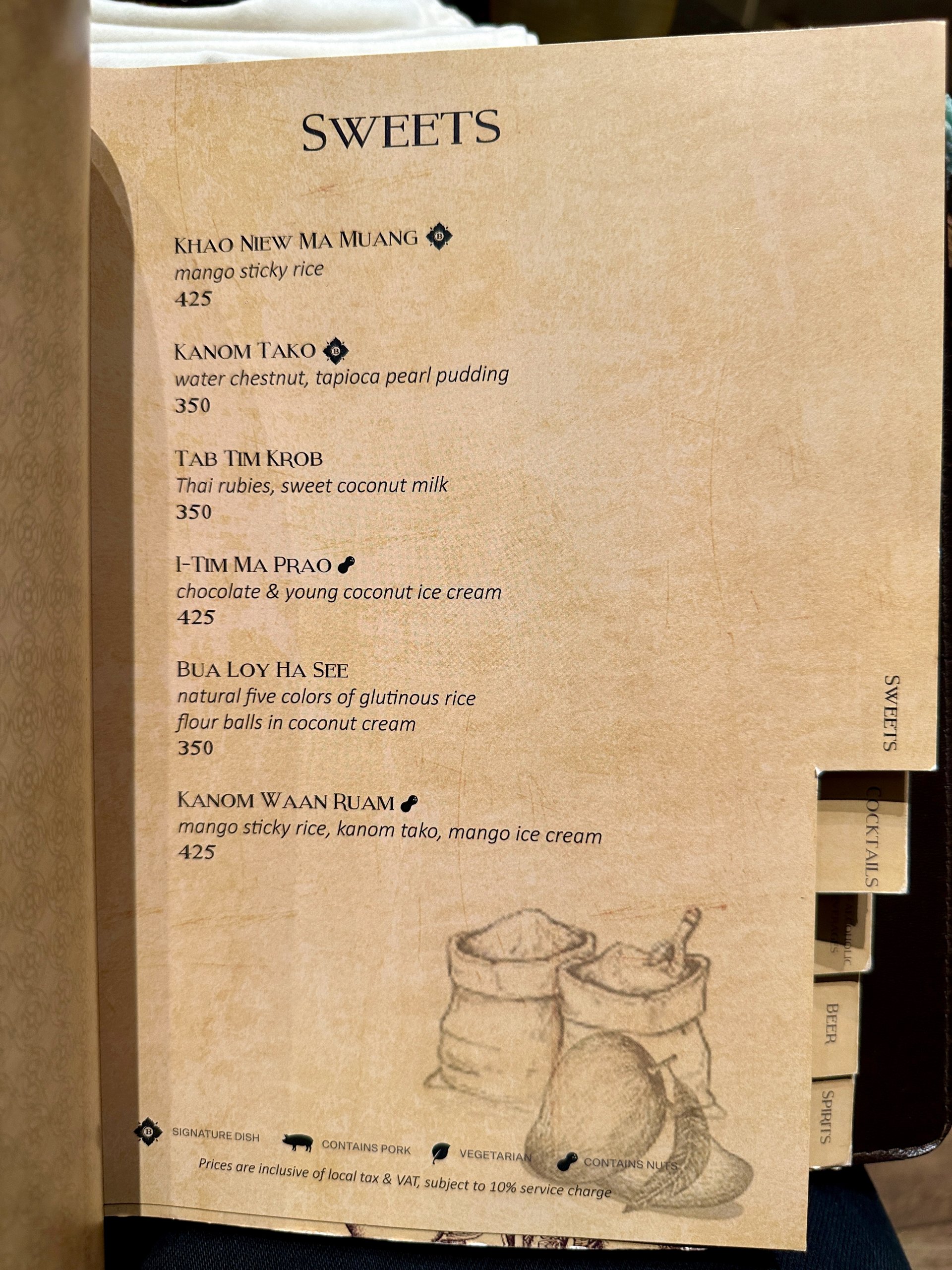 This is definitely worth it and a lot better than version 2, especially in terms of depth of flavor and unique take on a flavorful journey around Thailand. We loved every course, with satisfying portions that didn’t leave us feeling too full. My personal favorites were the Hoi Yaang (scallops), Ped Pha-lo Ha Ros (duck hot & sour soup), Yum Tua Plu Mu Yang (Grilled Iberico pork rib), and Gaeng Kiew Wan (green curry beef). The desserts were good and playful, but Filipino desserts are still better.