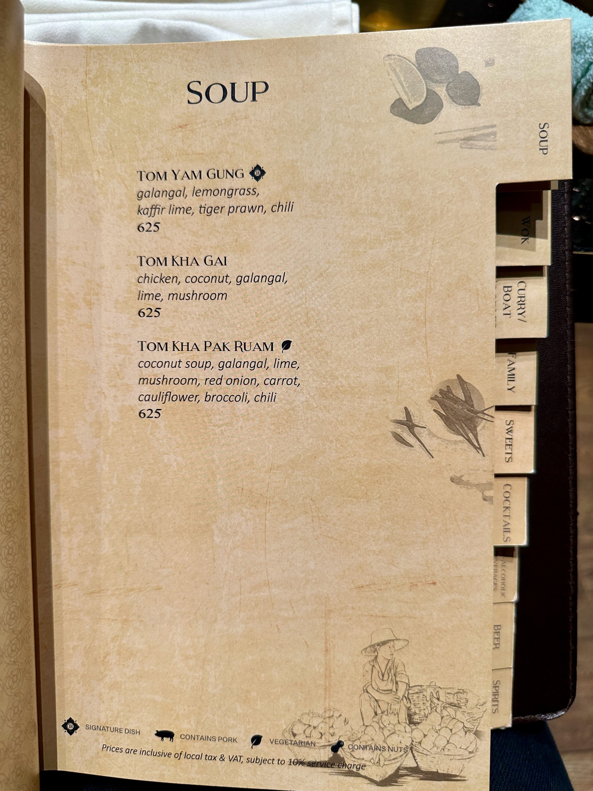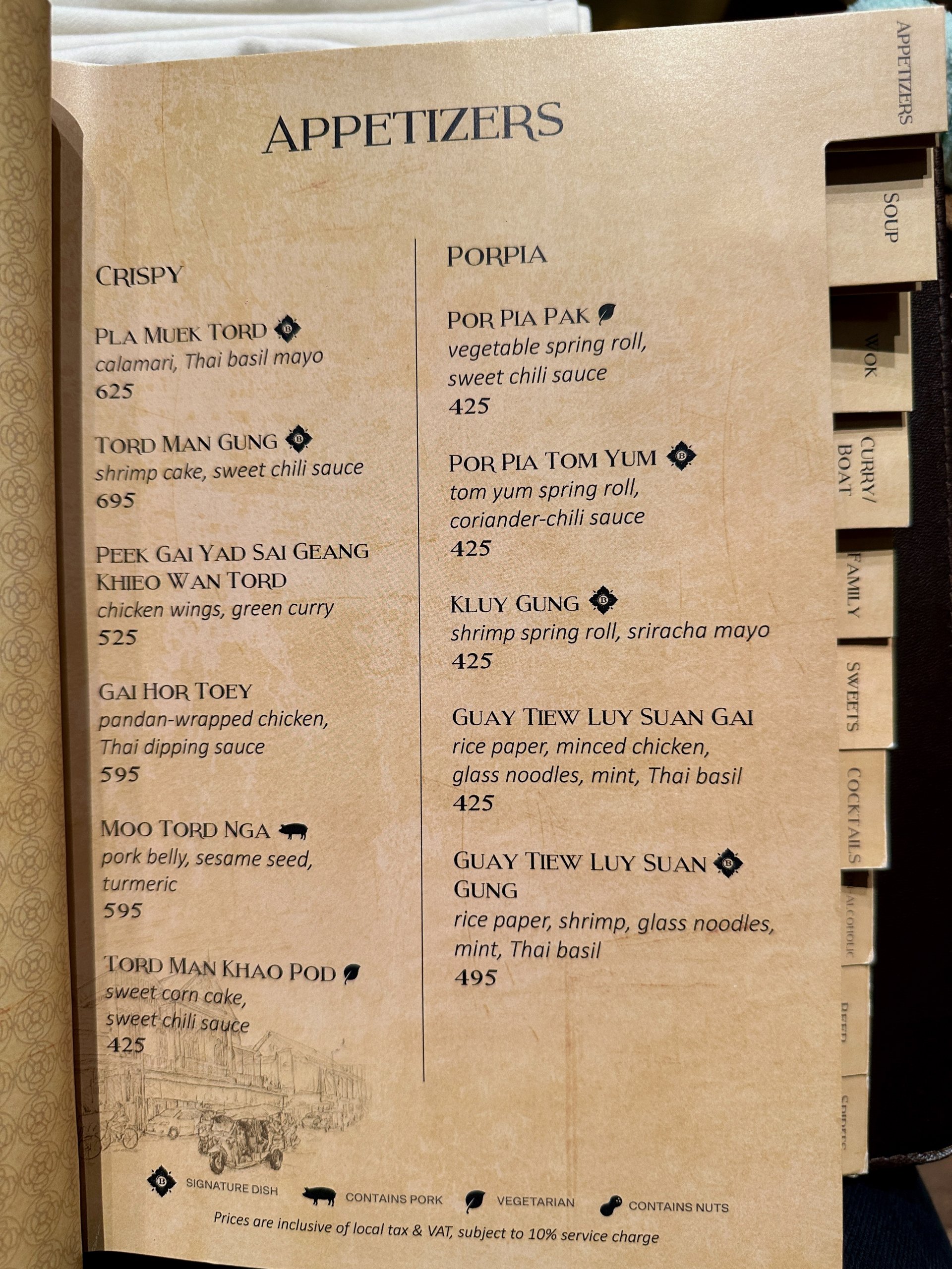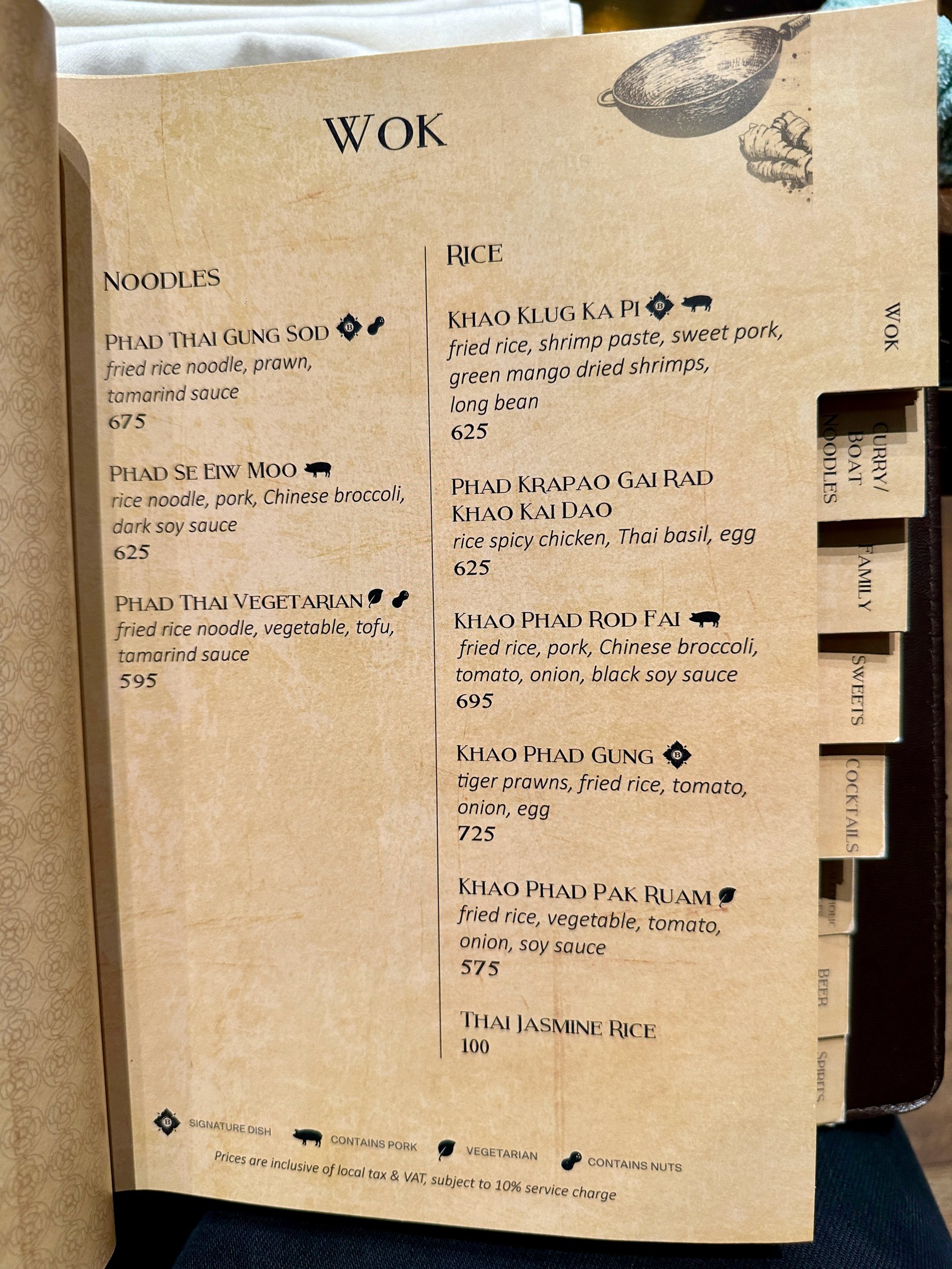 The menu features a variety of dishes from different regions of Thailand, each with its own unique flavors and ingredients.