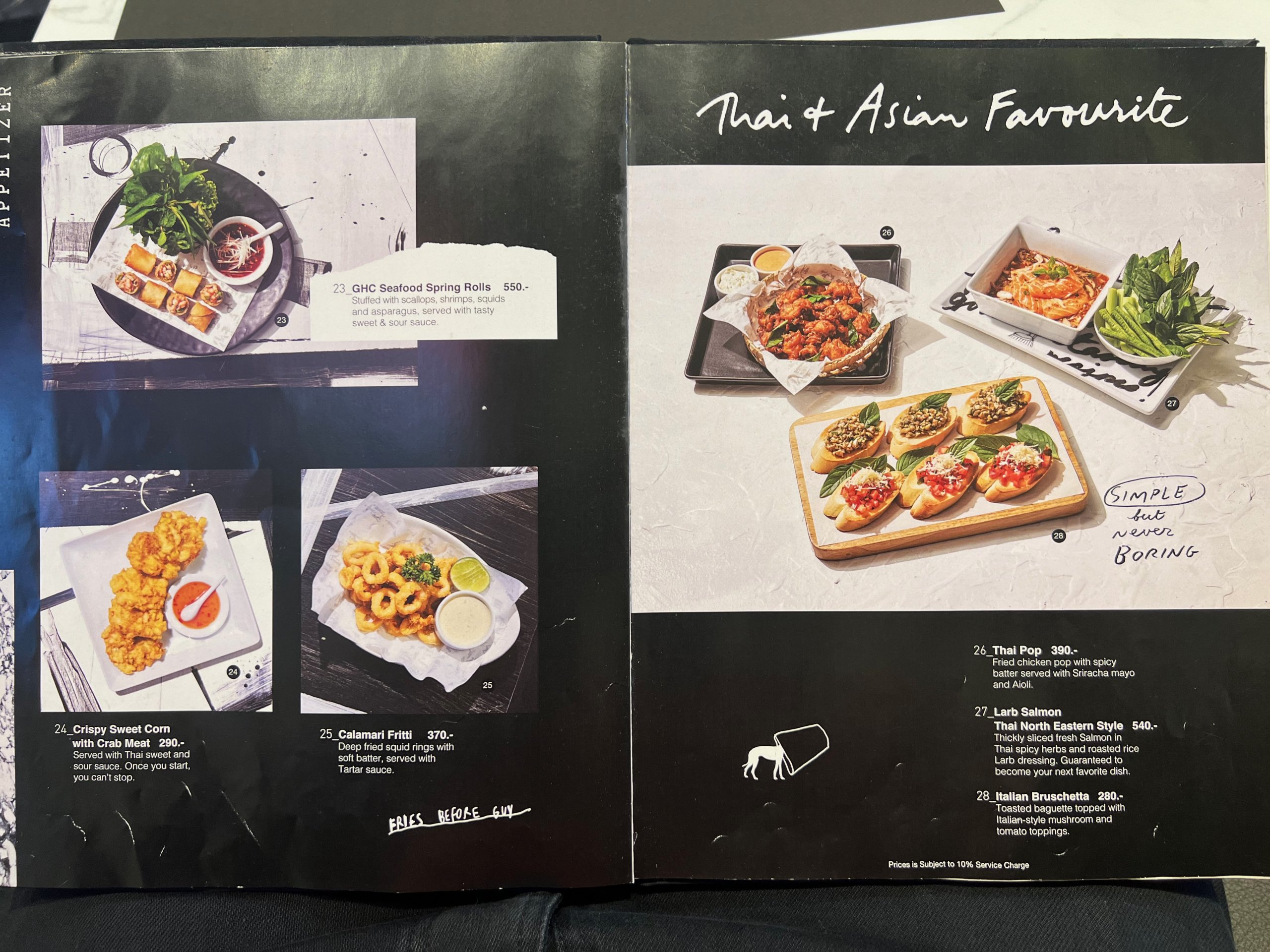 Overall, I love the street fashion-forward design of Greyhound Cafe and its modern Thai cuisine with a twist concept. I especially love the starters, such as the Greyhound Famous Fried Chicken Wings, Beef Massaman Curry with Roti, Weeping Tigers, and Salmon Sashimi in Spicy Hot Sauce. The classic Pad Thai and Tom Yum soup are also given a modern presentation and can be spicy. I also love the playful drinks, and my recent favorite was the Nom Yen Granita. They also have an extensive selection of Thai-inspired cakes for a sweet ending.