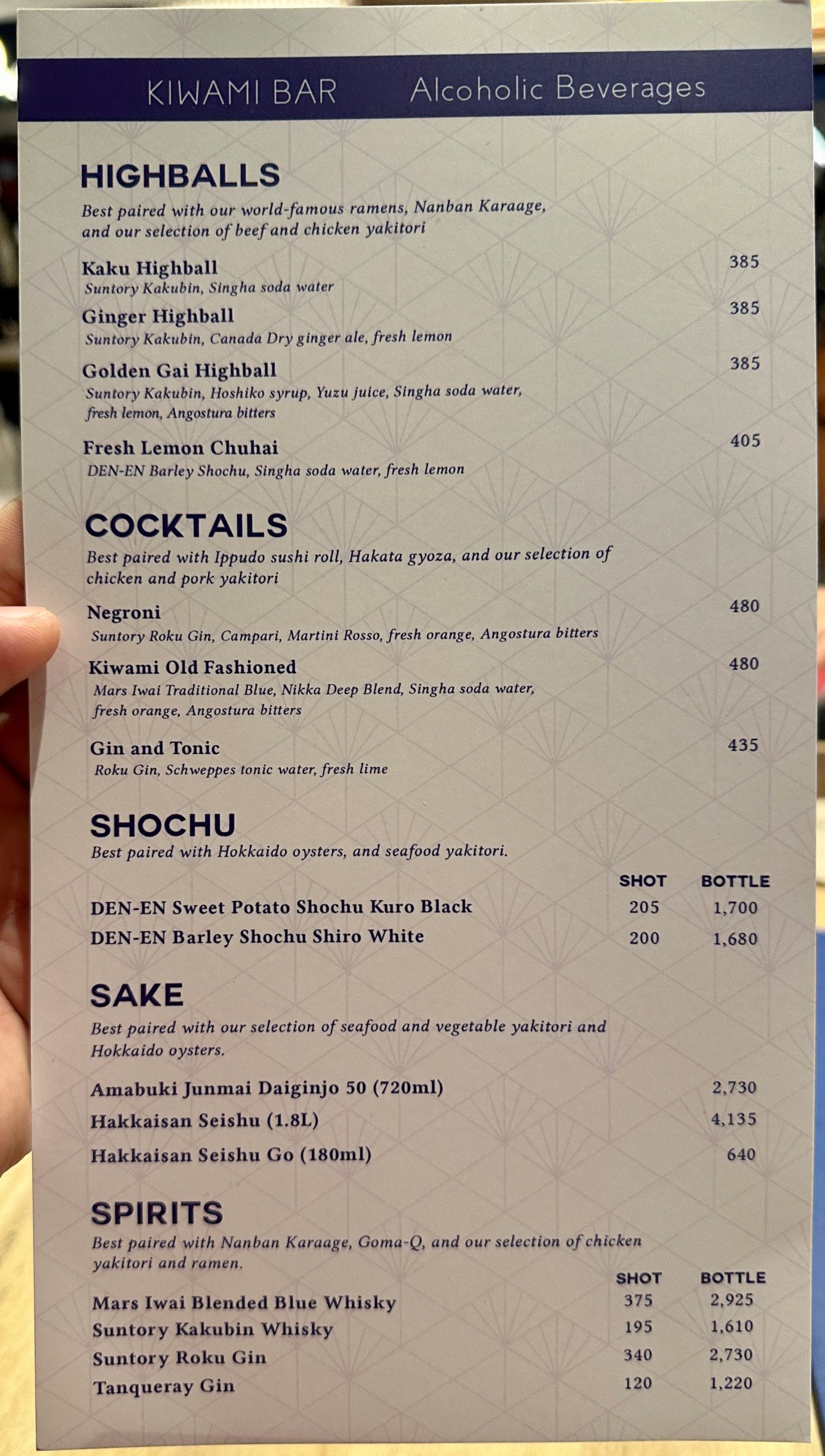 Kiwami Bar Menu: