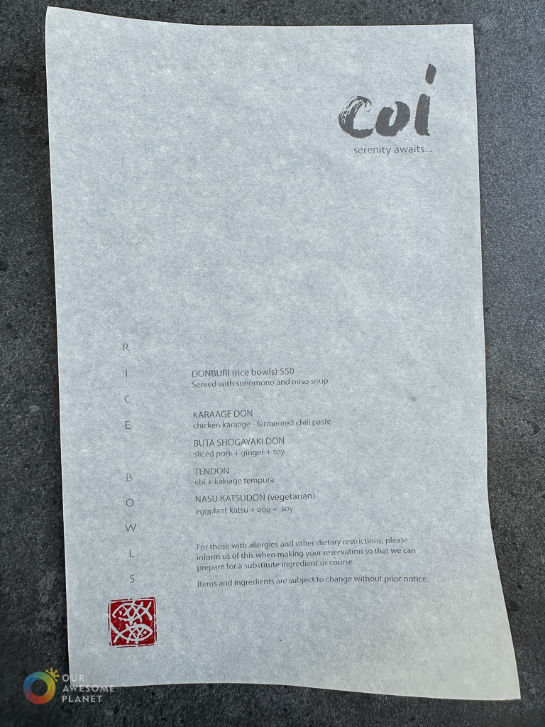 COI.PH MENU: Rice Bowls | Cocktails 360 | Teishoku Dinner | Teishoku Breakfast