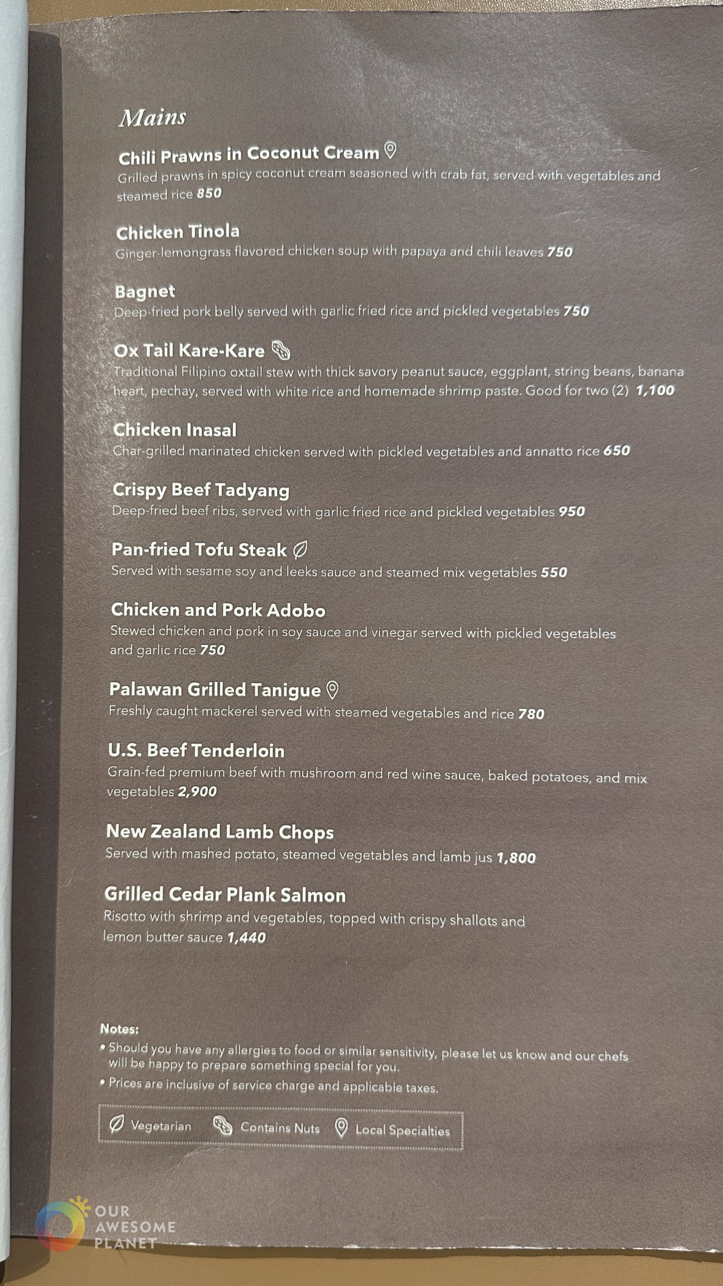 Ox Tail Kare-Kare (₱1,100).