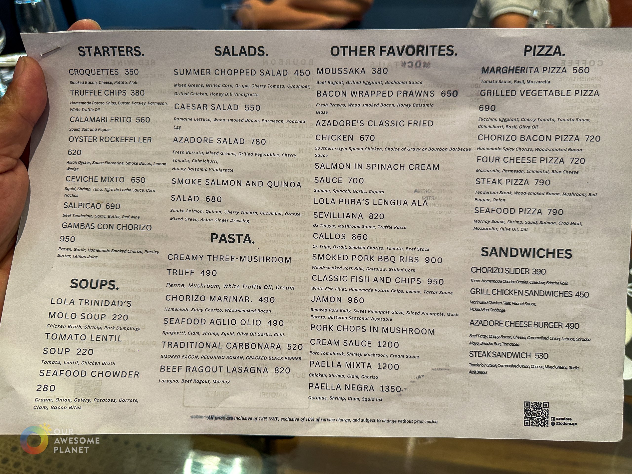 Overall, Azadore hits all the right flavor notes for our favorite comfort foods. If you were to attend a Sunday family celebration at a Filipino home, you would likely encounter this blend of Spanish, American, and Filipino culinary delights. The food is familiar but tastes special, with grilled or smoky hints in the salad, paella, and other comfort food.