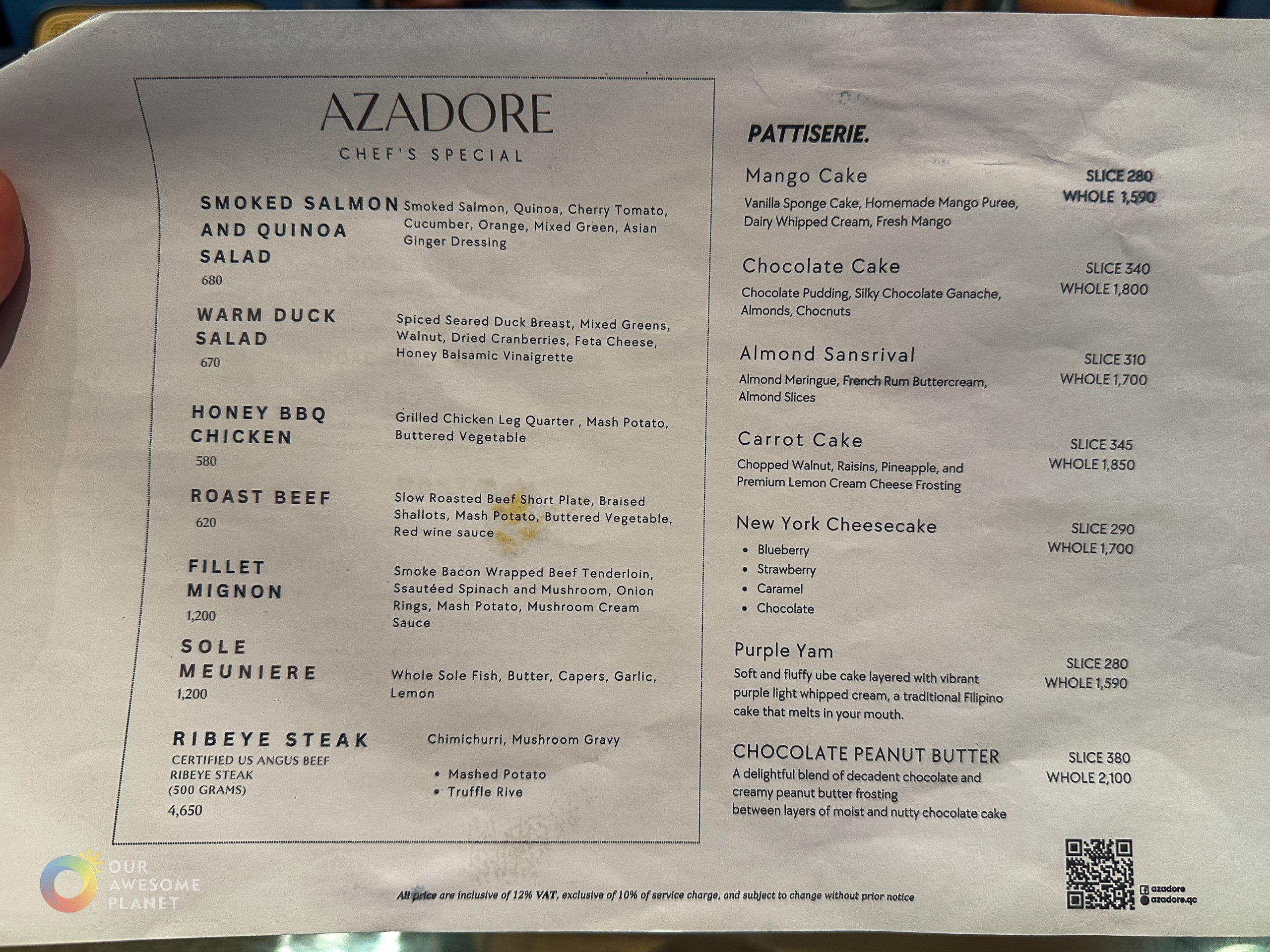 Azadore Menu: Food | Chef Specials, Pattiserie | Drinks