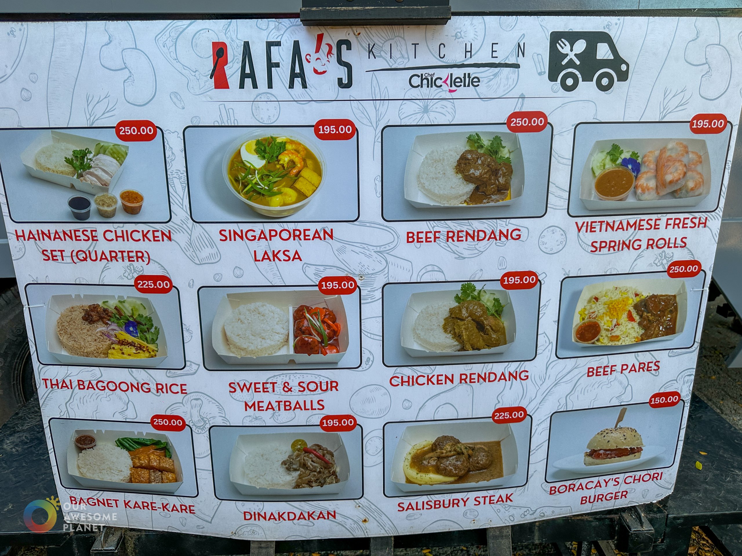 Rafa’s Kitchen is well-known for its South East Asian specialties, including Hainanese Chicken and Laksa from Singapore, Fresh Spring Rolls from Vietnam, and their unique Bagnet Kare-Kare version. This food truck outlet has a loyal following and can satisfy your craving for hawker specialties. The branding is simple, but there is room for improvement to better reflect the exceptional quality of the food.