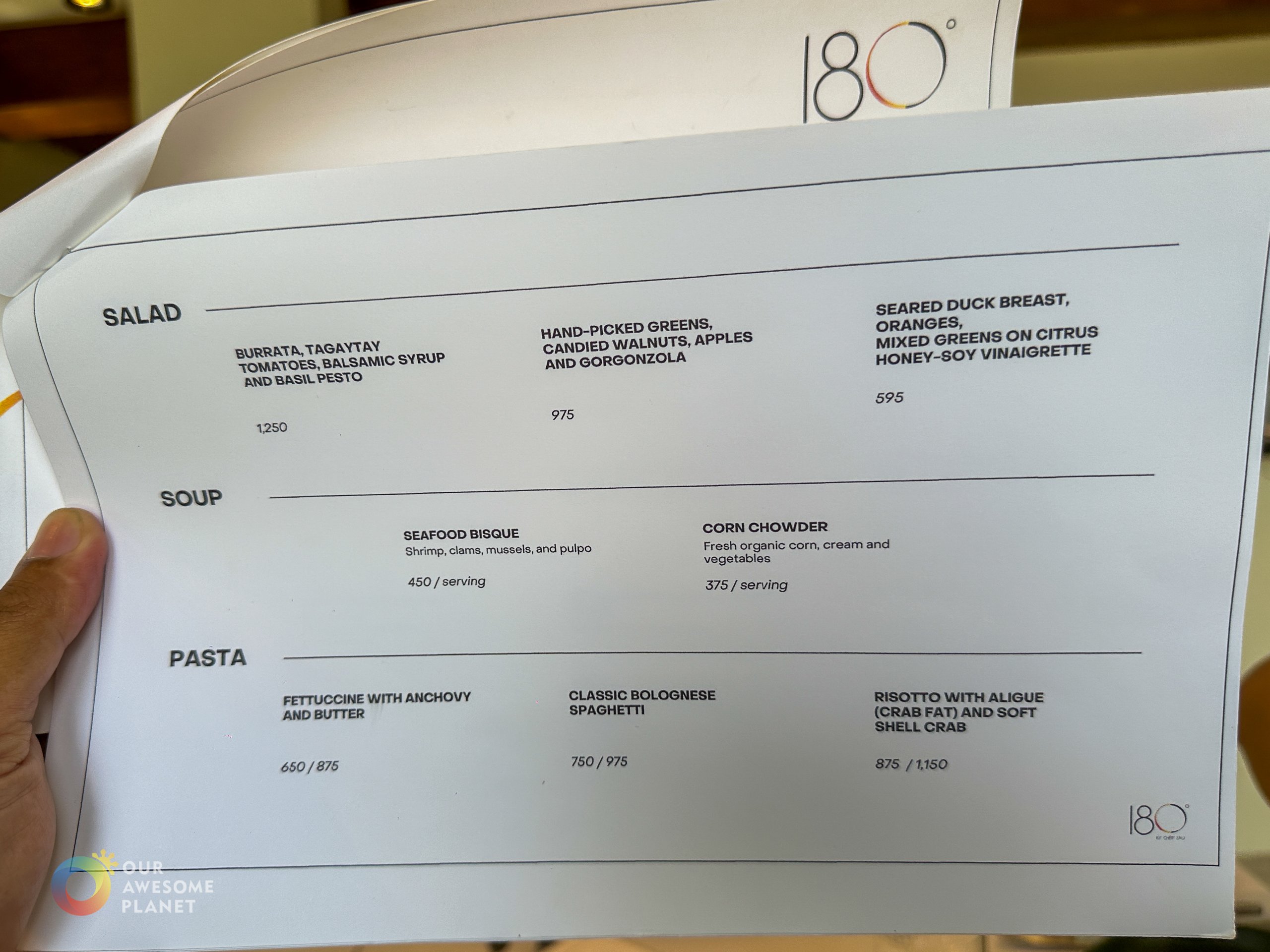 Menu: Appetizers | Salad, Soup, Pasta | Mains (Filipino) | Mains (Western), Grill, Dessert